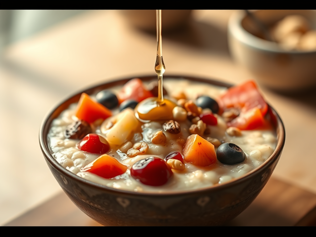 When I was going to acupuncture for my IBS years ago, my acupuncturist recommended I make rice congee which she said was nourishing and healing for the digestive system. Whether it’s sweet or savory she also said it would be easy to digest and is good for inflammation.