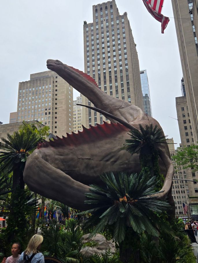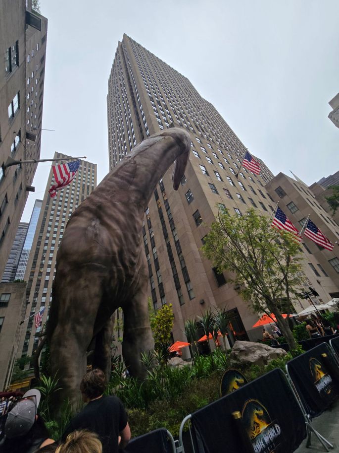After I left I had to walk back a few blocks and I did pass Rockefeller Center where they have a 5-story Titanosaurus promoting the movie Jurassic Park on display. I took a few quick pictures, and walked even more slowly to the train.