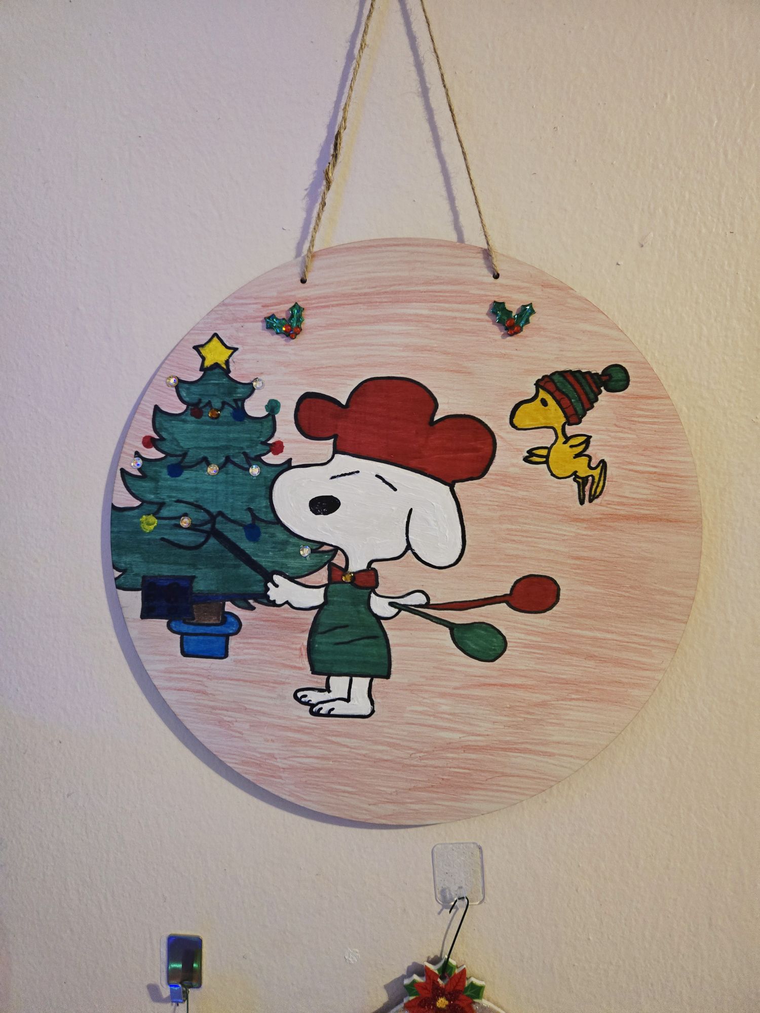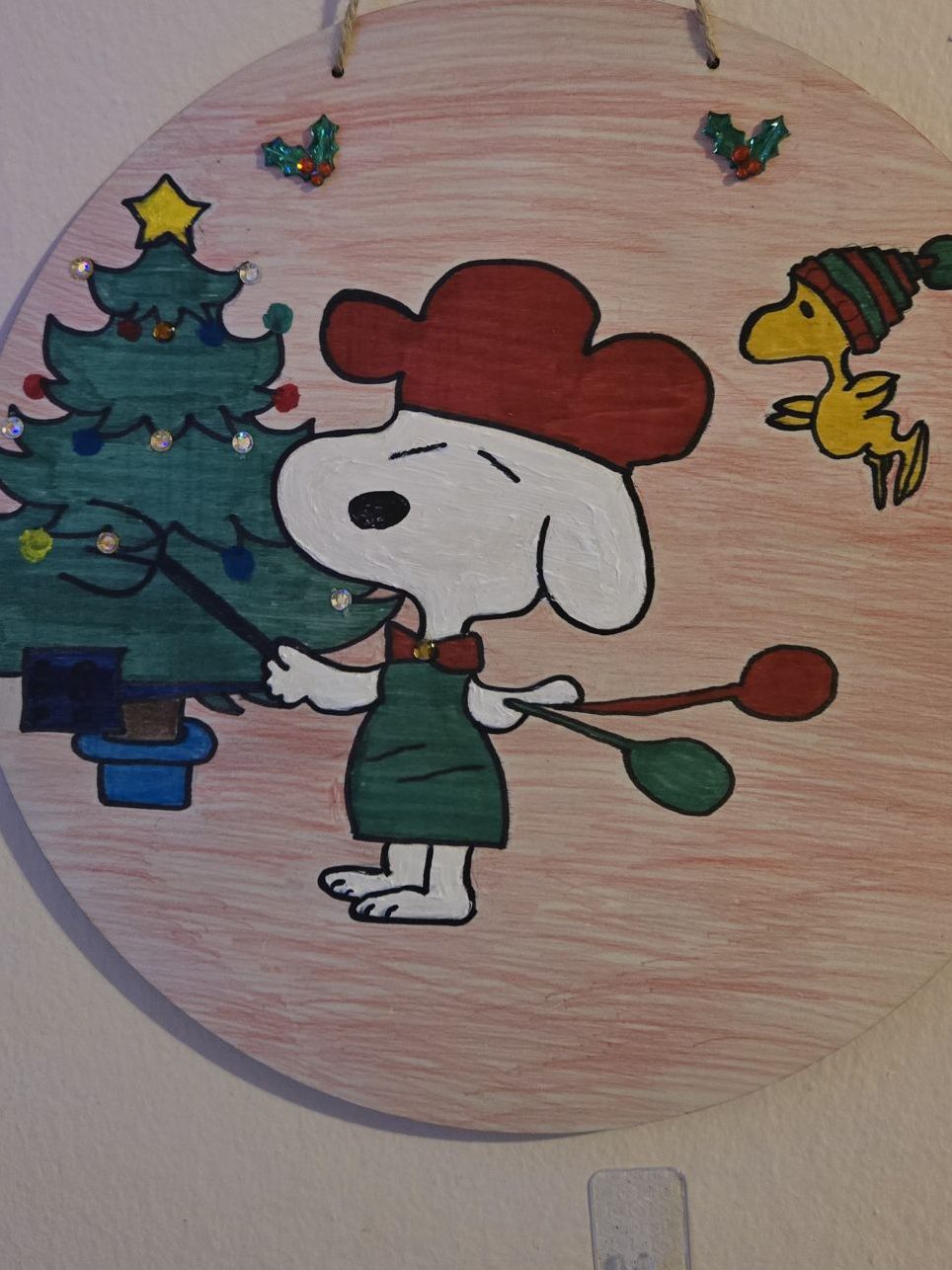 For now, I am resting as much as I can and doing things I love that I had stopped caring about like drawing. I leave you with a pic of the latest artwork I did with inspiration from the Wise Potato chip bags that are celebrating Peanuts 75th anniversary. Here I used a combination of acrylic paint for snoopy, colored pencils and markers. Plus to make it even more festive, I added some blingy stickers from the craft store for the tree.